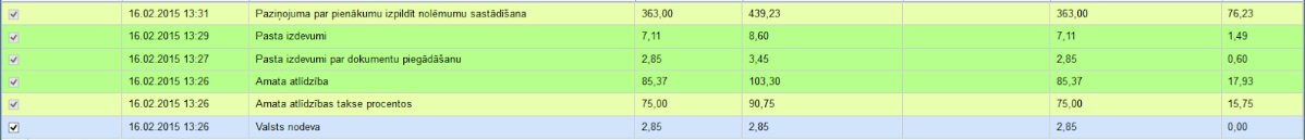 Zaļā tonī tiks attēlotas Aprēķinu aktivitātes, kas ir segtas pilnībā, bet aktivitātes ar daļēji piesaistītām summām dzeltenā tonī. Uz pārējiem aktivitāšu ierakstiem tas neattiecas.